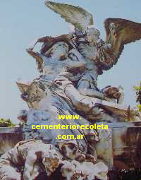 El señor José C. Paz fue un reconocido periodista y abogado, fundador del diario La Prensa . Falleció en París en 1912. La bóveda está ornamentada con esculturas de Jules Coutan, quien sabiamente desarrolla una bella simbología de lo espiritual. En la parte superior, puede observarse un féretro entreabierto, a través del cual se eleva el alma y un ángel le indica el camino hacia el cielo. Otro elemento simbólico es la lámpara apagada que sostiene una mujer, doblegada por el dolor ante la pérdida y el ancla que sostiene uno de los ángeles que flanquean la puerta, como símbolo de la esperanza. Texto: Susana Espósito - Fotos: Luis Leoz |